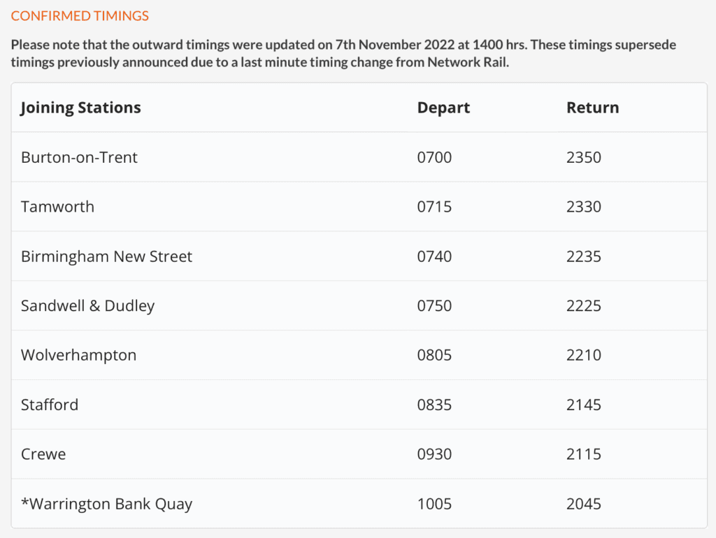 Due to a derailment outside of Carlisle, the return journey will now run from Newcastle via Durham, York and the Calder Valley, regaining its previously booked route just north of the first set down at Warrington Bank Quay. The Class 40 will now continue from Crewe via Birmingham New Street to the end of the itinerary at Burton-on-Trent. The outwards journey remains unaffected.
